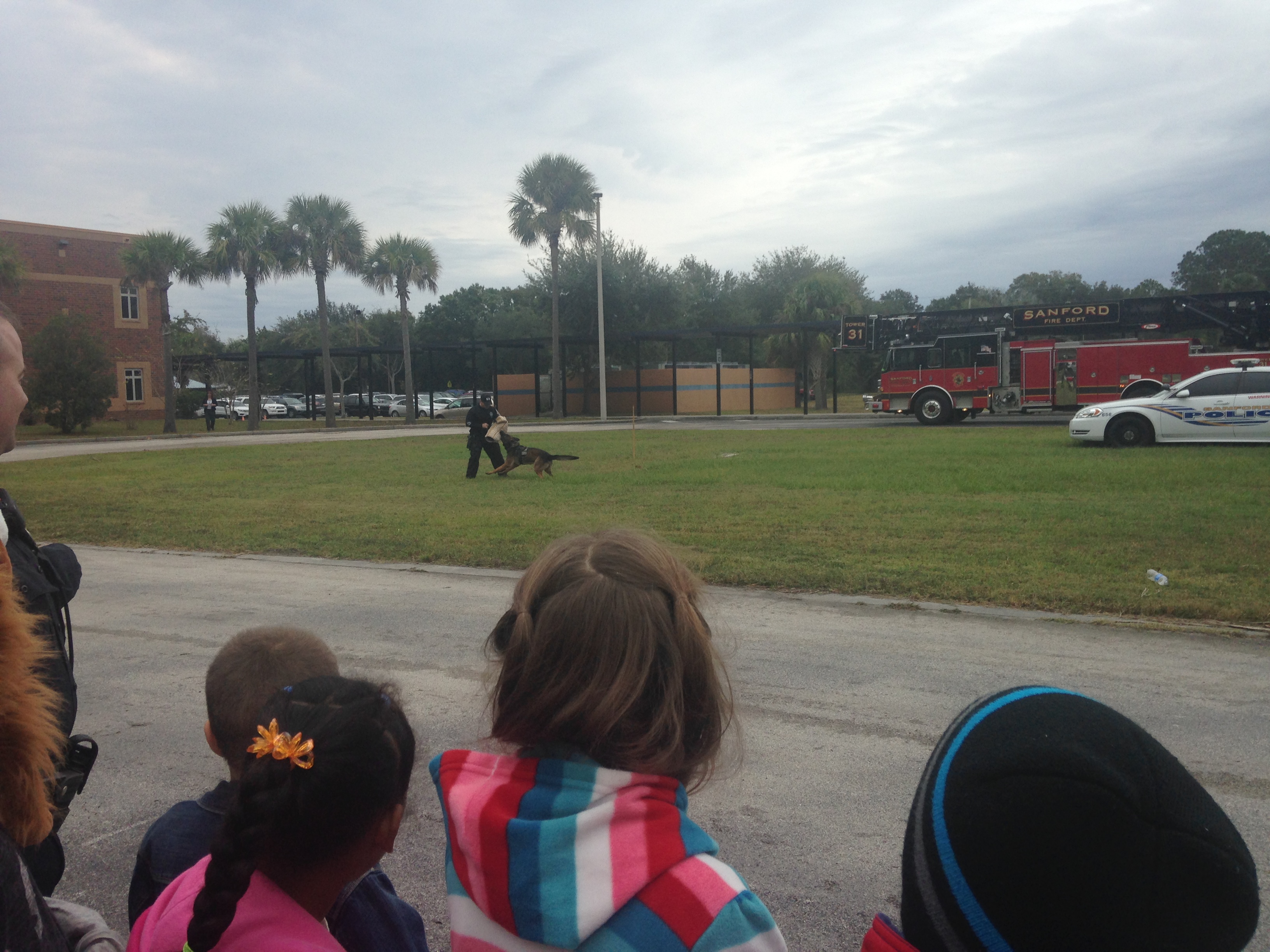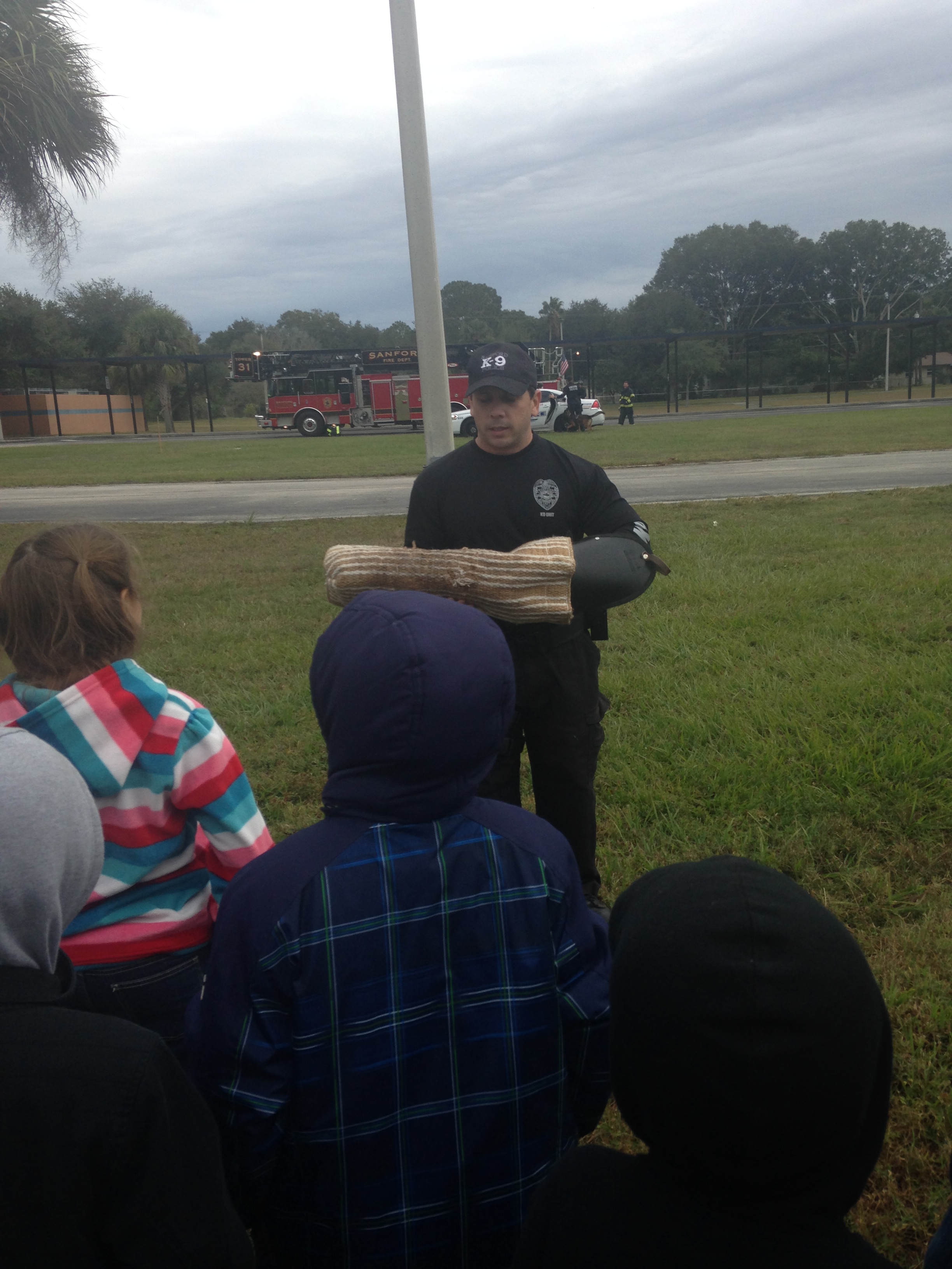 Here Sanford Police Chief , Cecil Smith, came for a visit to talk with us about safety, and share with us some of the gadgets tools they use to do their jobs.