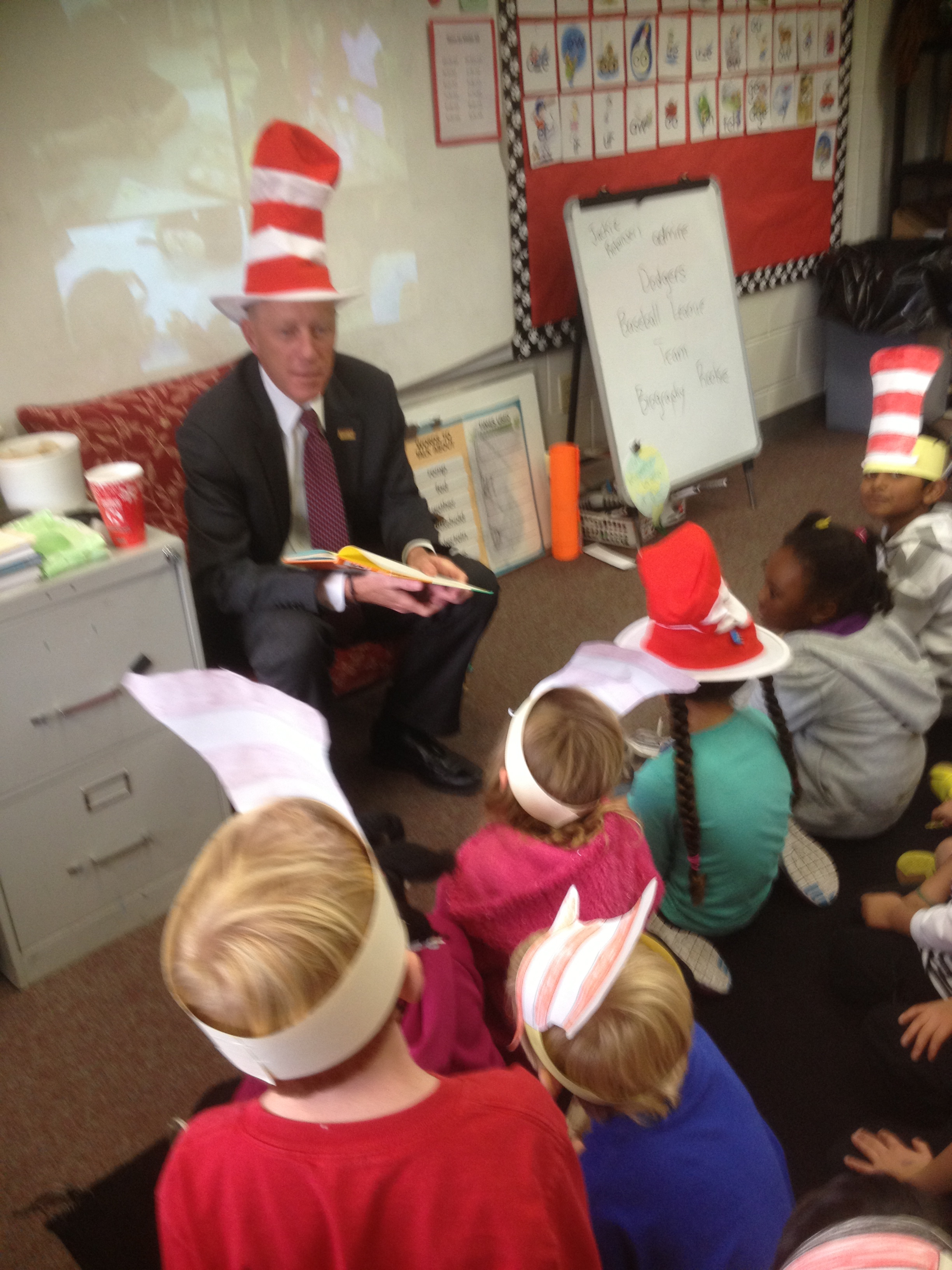 One day even Sanford Mayor Jeff Triplett stopped in to share his love for reading! Mayor Triplett really got into it, and the students loved that he wore the Cat in the Hat’s hat.